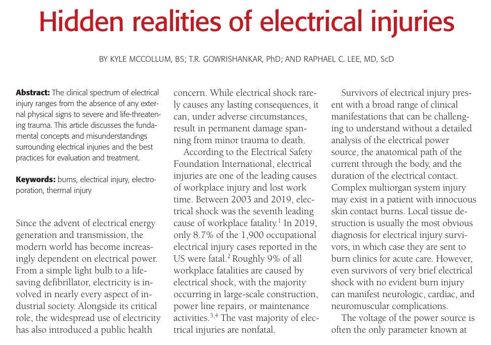 CETRI was founded to advance medical research on electrical shock and radiation injuries and translate these findings into improved rehabilitation for survivors. Our multi-institutional, multidisciplinary team evaluates patients who experience difficulty achieving full recovery, providing guidance to optimize their rehabilitation outcomes. CETRI is not an emergency care facility; rather, it advises patients and primary care providers on the long-term management of electrical injury complications.